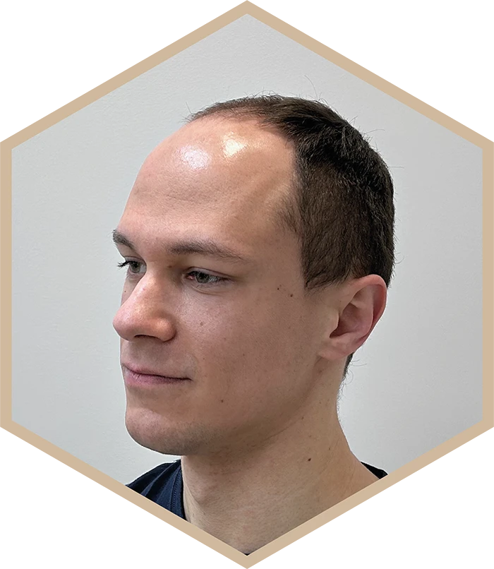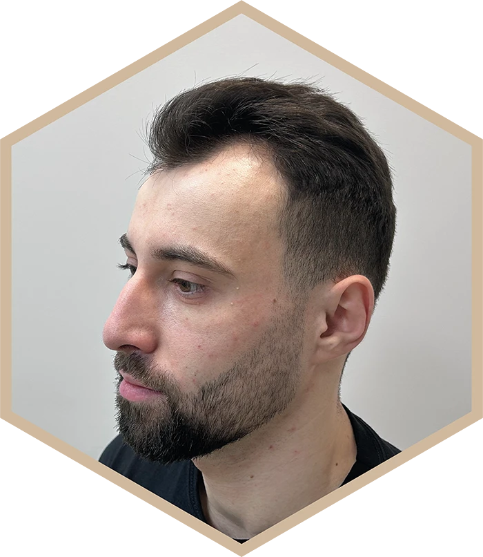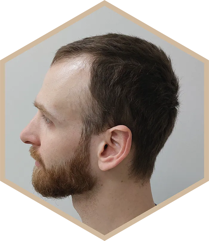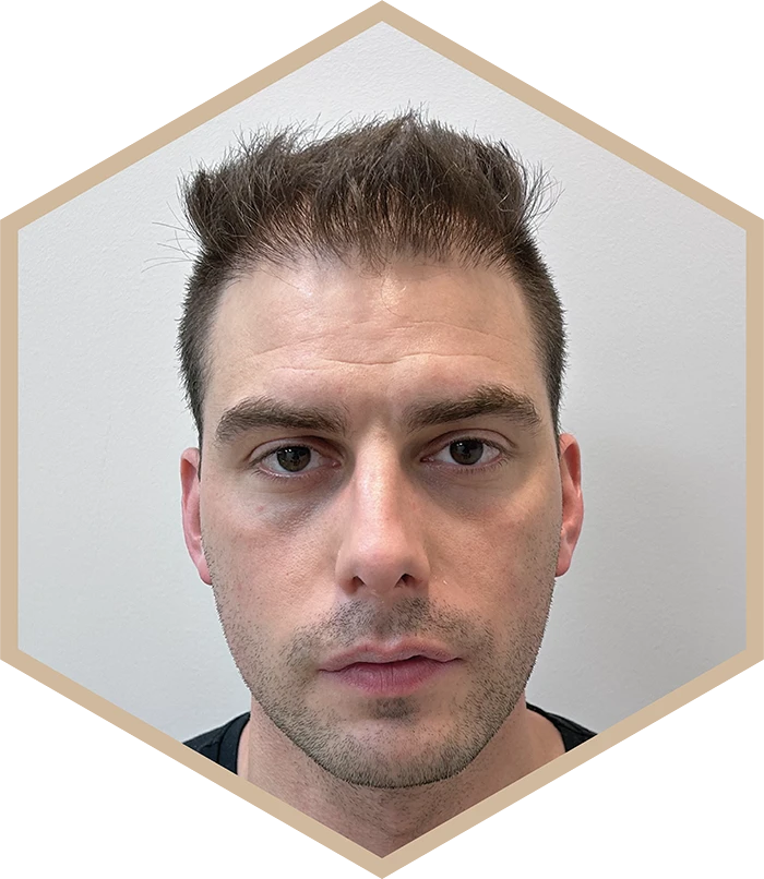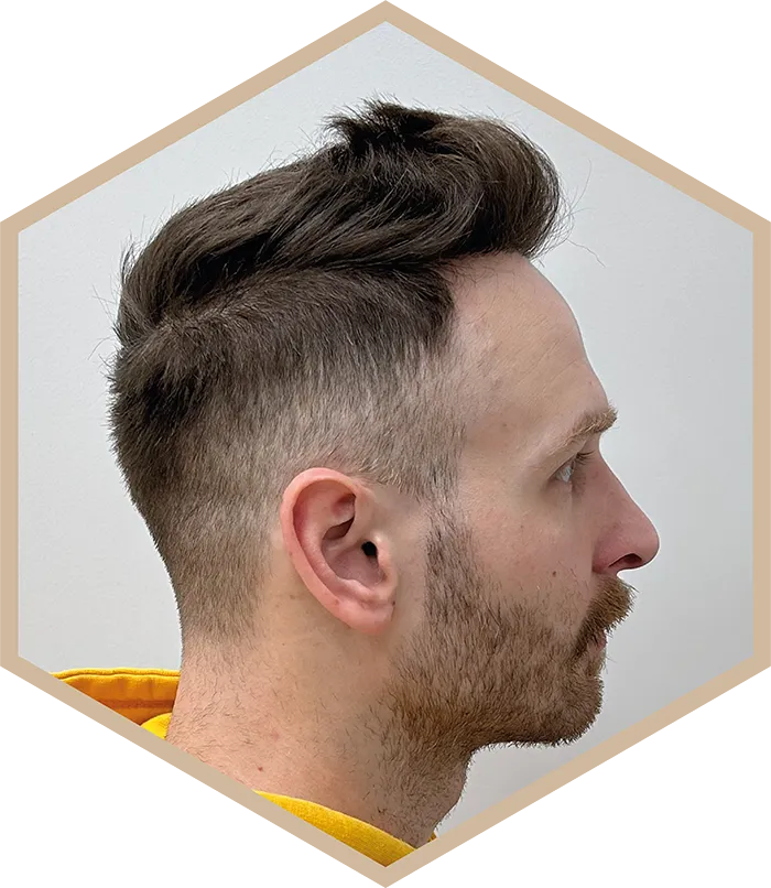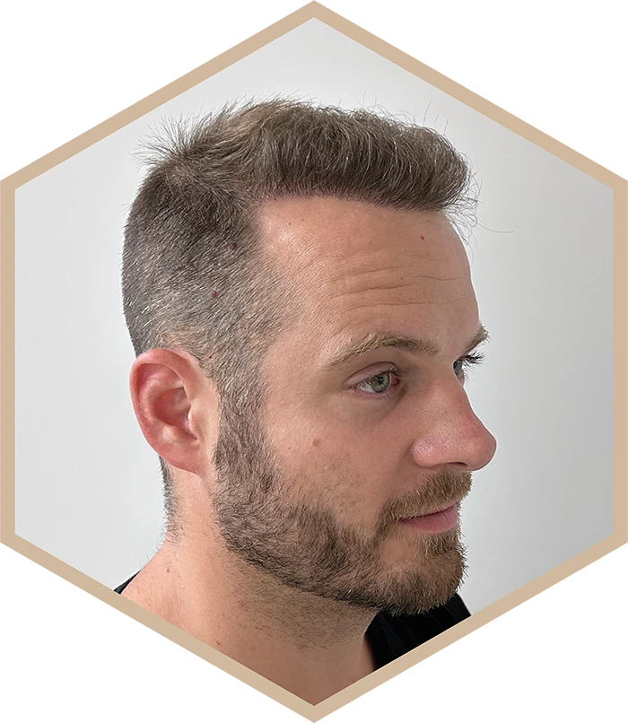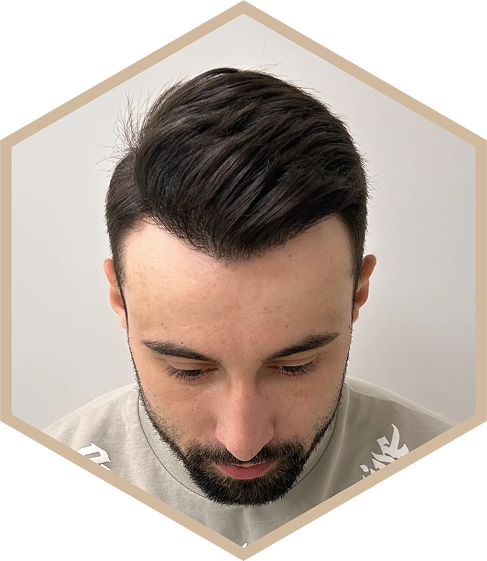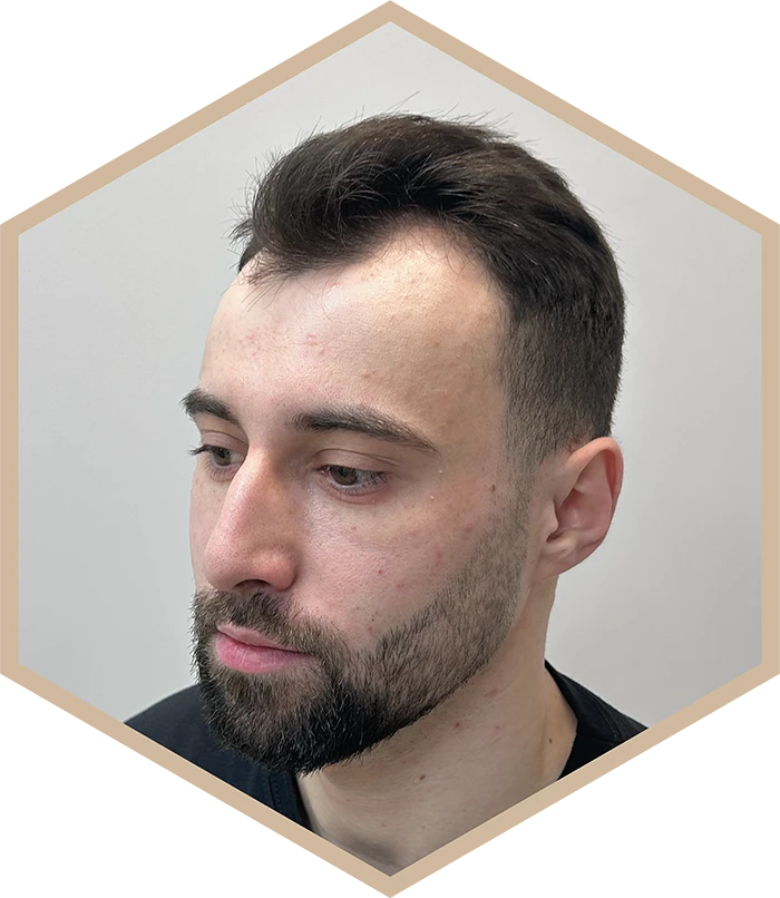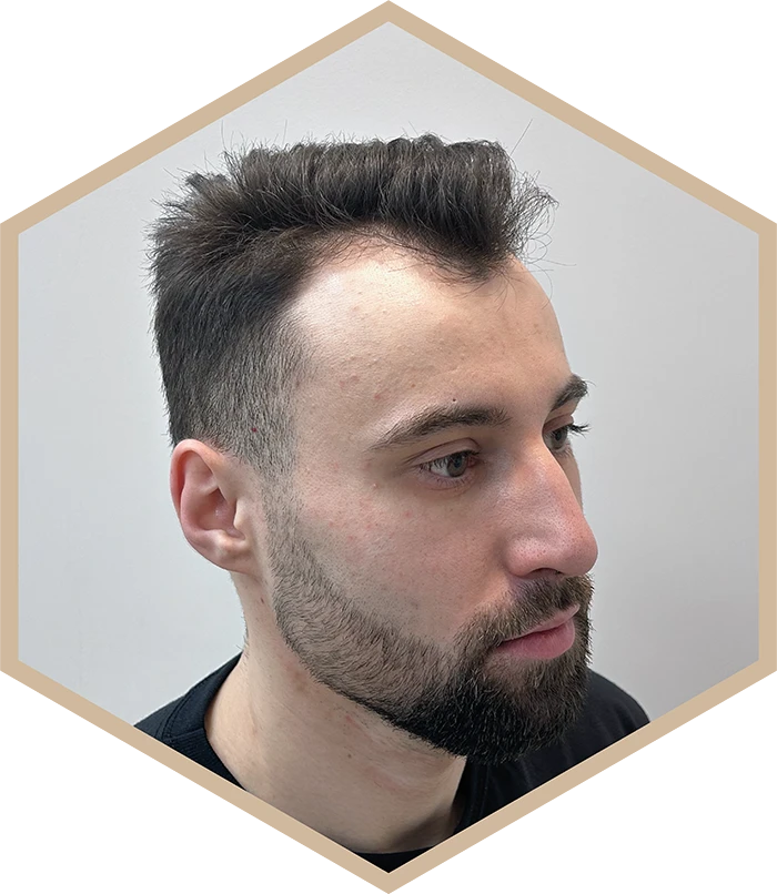În cazul lui Bence, au fost necesare 7.500 de transplanturi de păr pentru a restabili creșterea completă a părului în întreaga zonă chelie. Procedura de 2 zile a fost efectuată folosind metoda Premium FUE și densitatea maximă de la linia părului până la coroană. A fost important ca pacientul nostru să creeze o linie naturală a părului, care se reflectă în rezultate. Vă mulțumim pentru încredere.