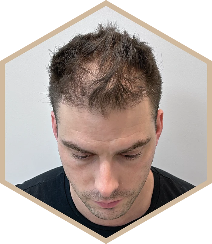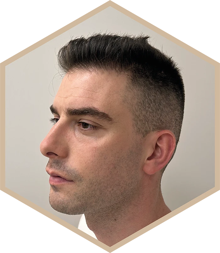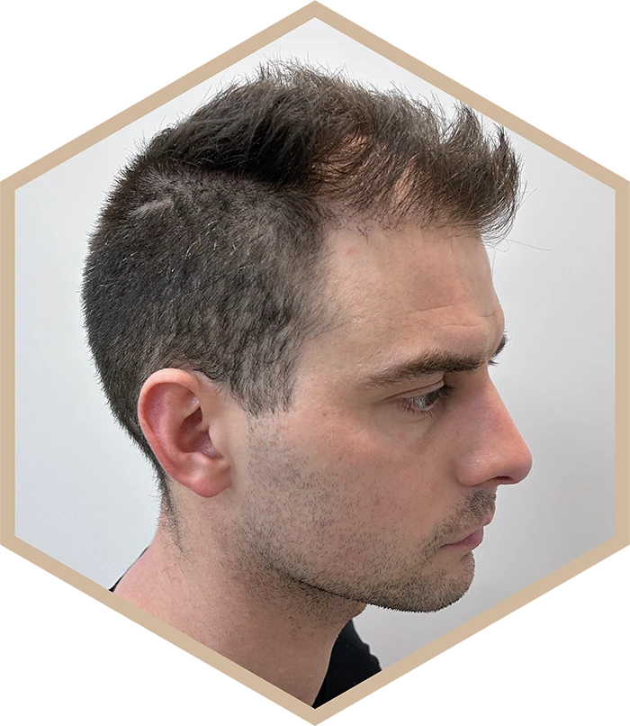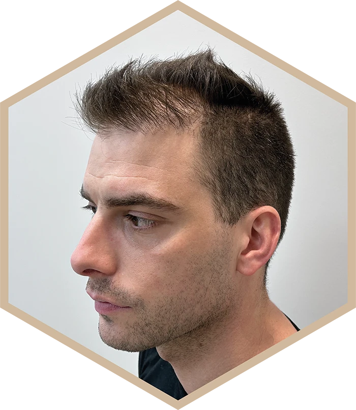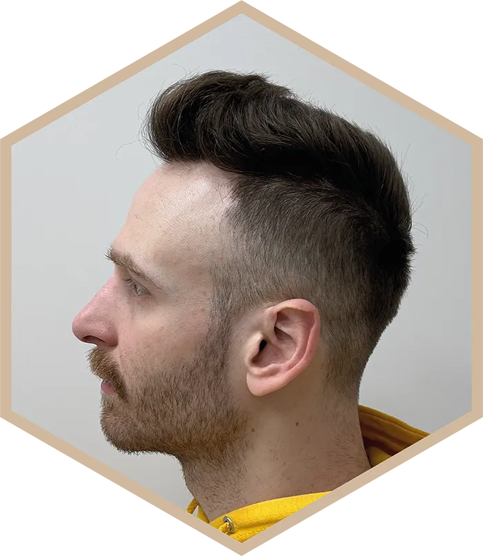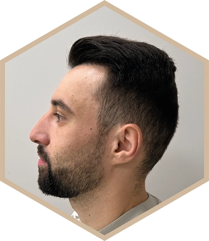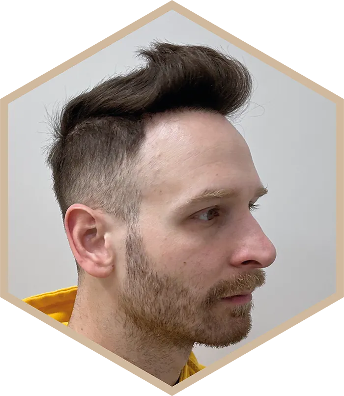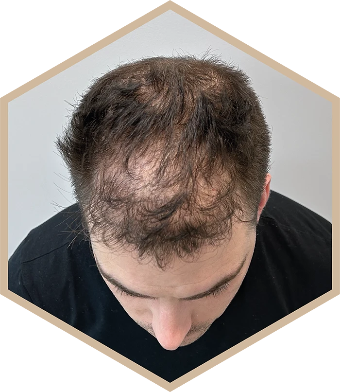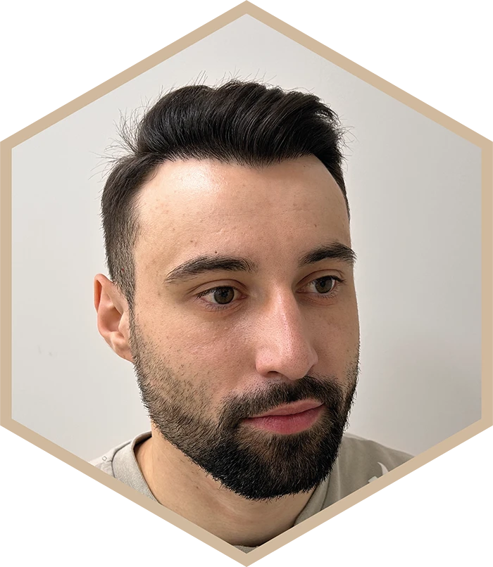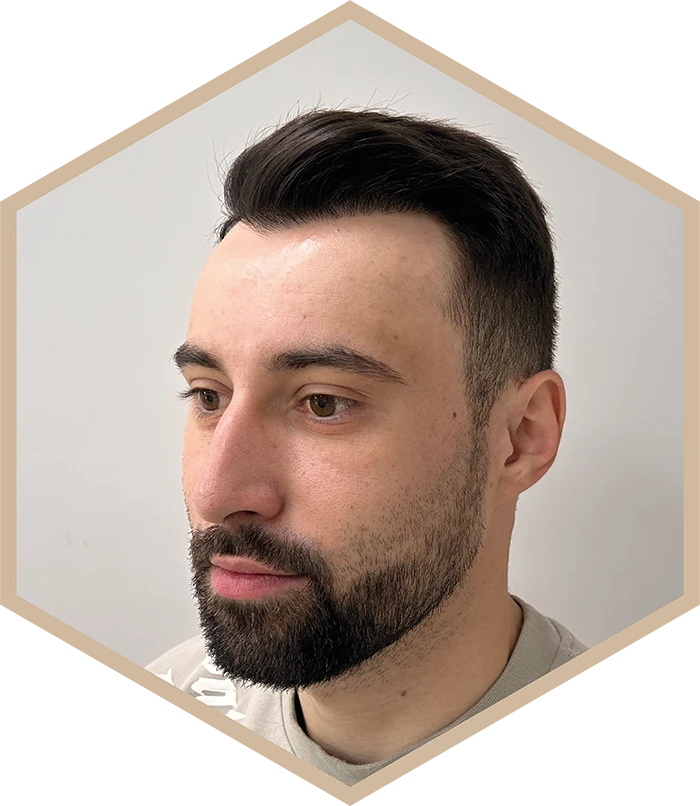 În cazul lui Bence, au fost necesare 7.500 de transplanturi de păr pentru a restabili creșterea completă a părului în întreaga zonă chelie. Procedura de 2 zile a fost efectuată folosind metoda Premium FUE și densitatea maximă de la linia părului până la coroană. A fost important ca pacientul nostru să creeze o linie naturală a părului, care se reflectă în rezultate. Vă mulțumim pentru încredere.